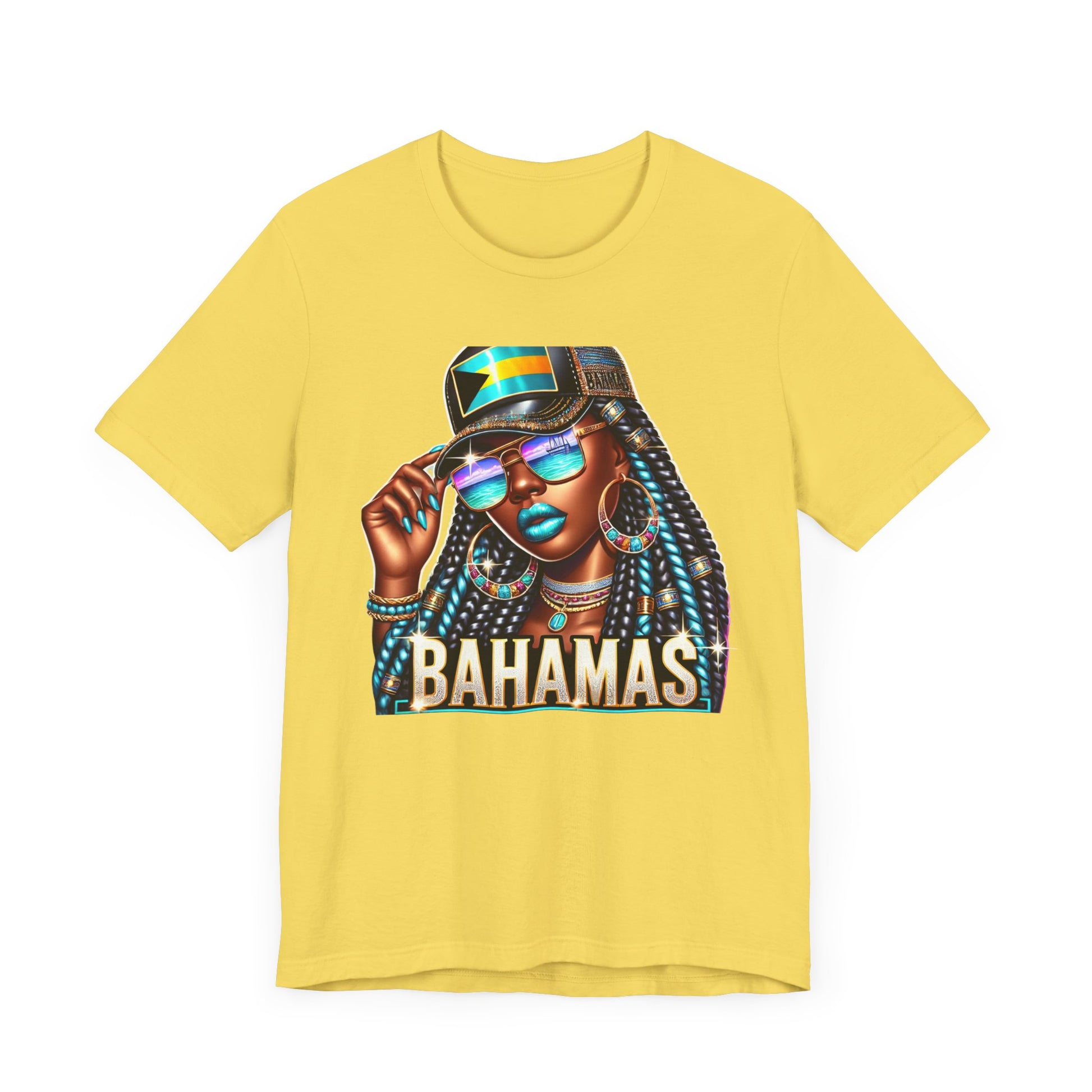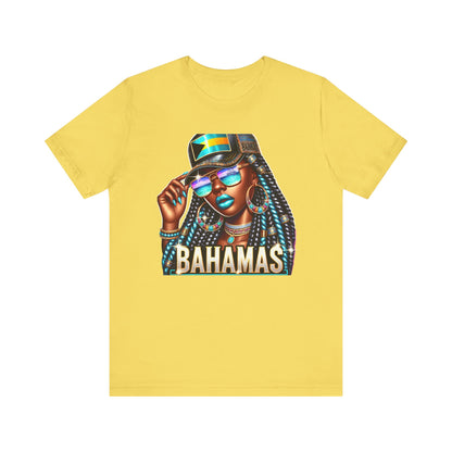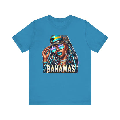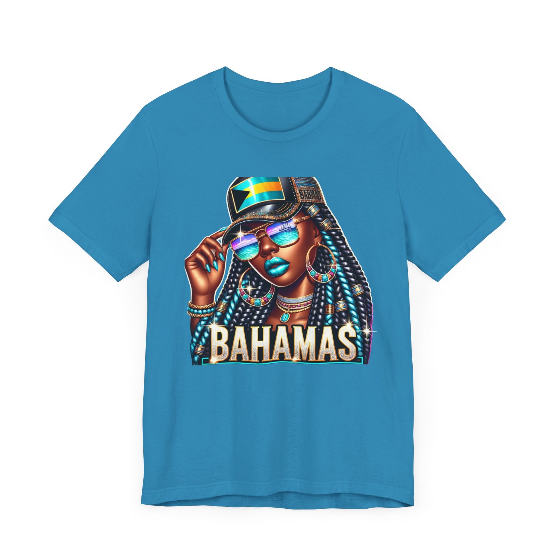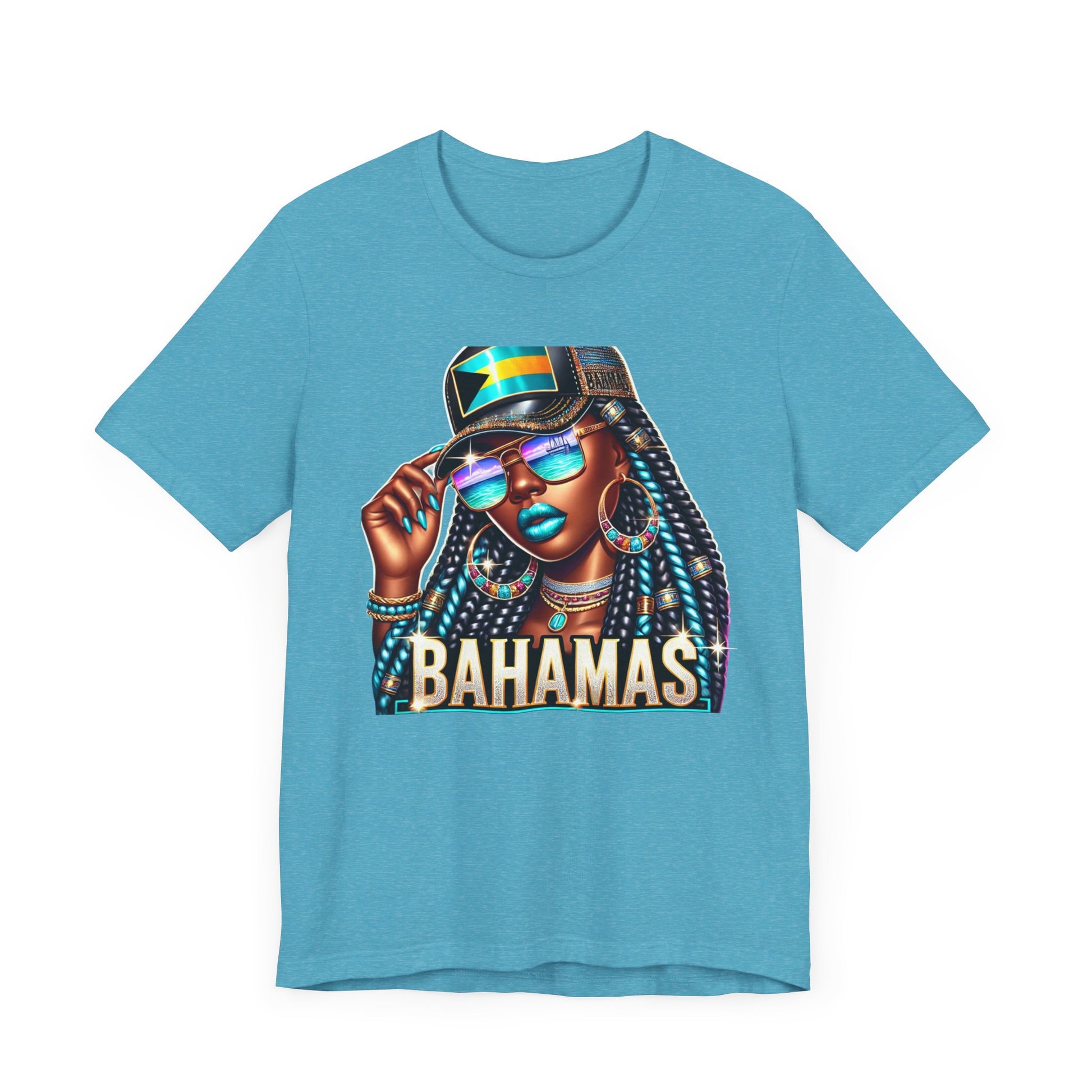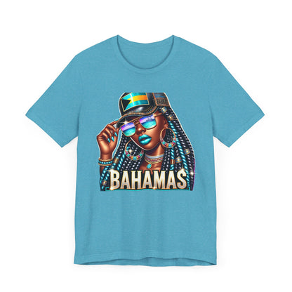 Embrace the essence of Bahamian culture with the Bahamas Pride Women's T-Shirt – Afrocentric Graphic Tee, a perfect blend of style, comfort, and patriotism. This stunning graphic tee is designed to celebrate the rich heritage of the Bahamas, featuring an artistic representation of the Bahamian flag and a proud female figure that embodies the spirit of the islands. Whether you're at a cultural festival or simply expressing your love for your roots, this t-shirt is a vibrant addition to your wardrobe.