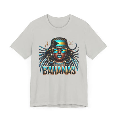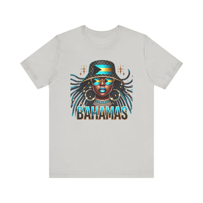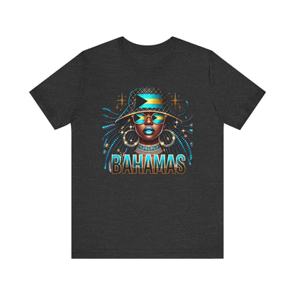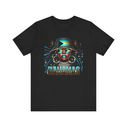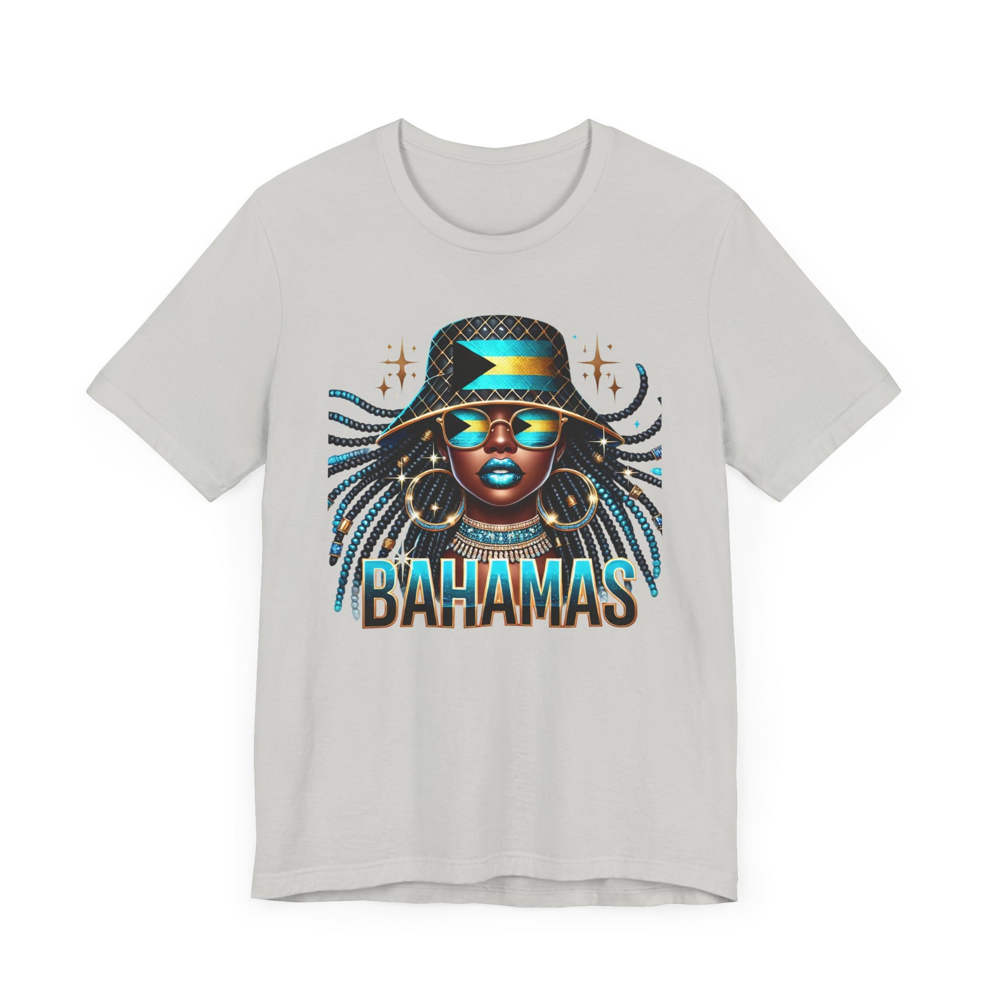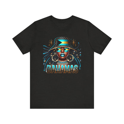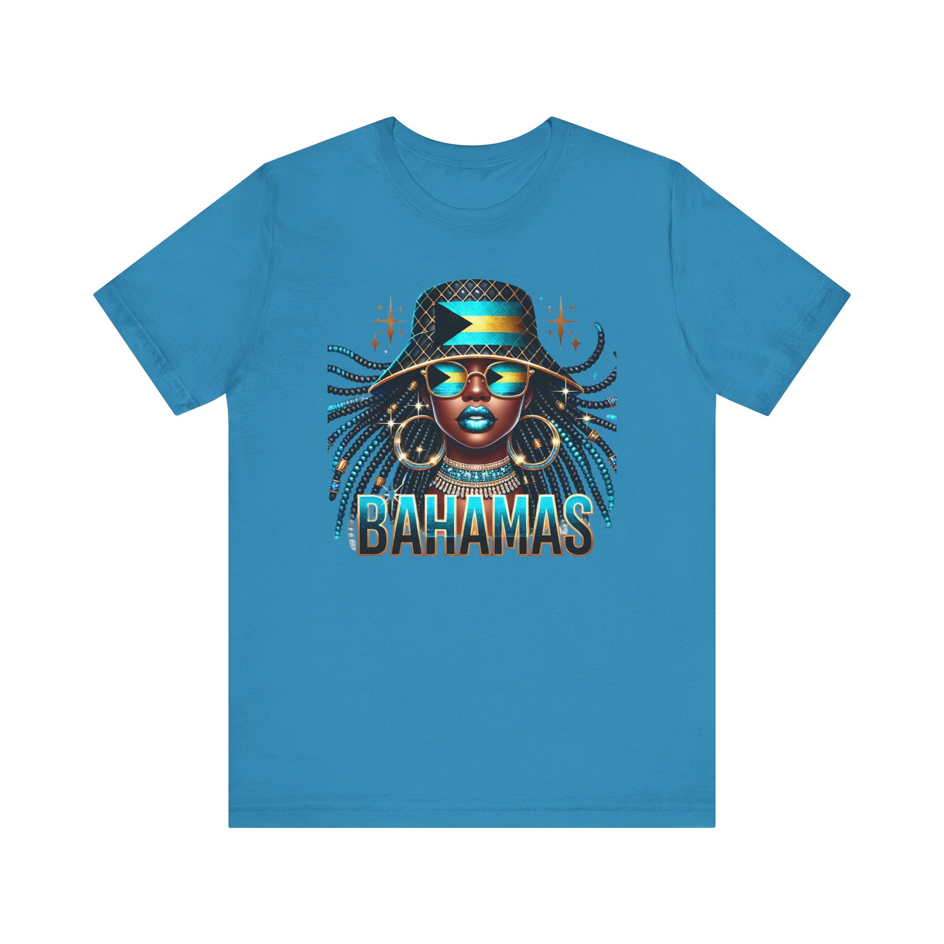Wear your Bahamian patriotism with pride with our Bahamas Pride Women's Graphic T-Shirt. This bold and inspiring design celebrates the resilience, unity, and rich culture of the Bahamas. At its heart is a striking graphic of a strong female figure wearing a cap adorned with the Bahamian flag, symbolizing unwavering national pride. The bold "BAHAMAS" lettering reflects your love for the islands and your commitment to honoring its heritage.