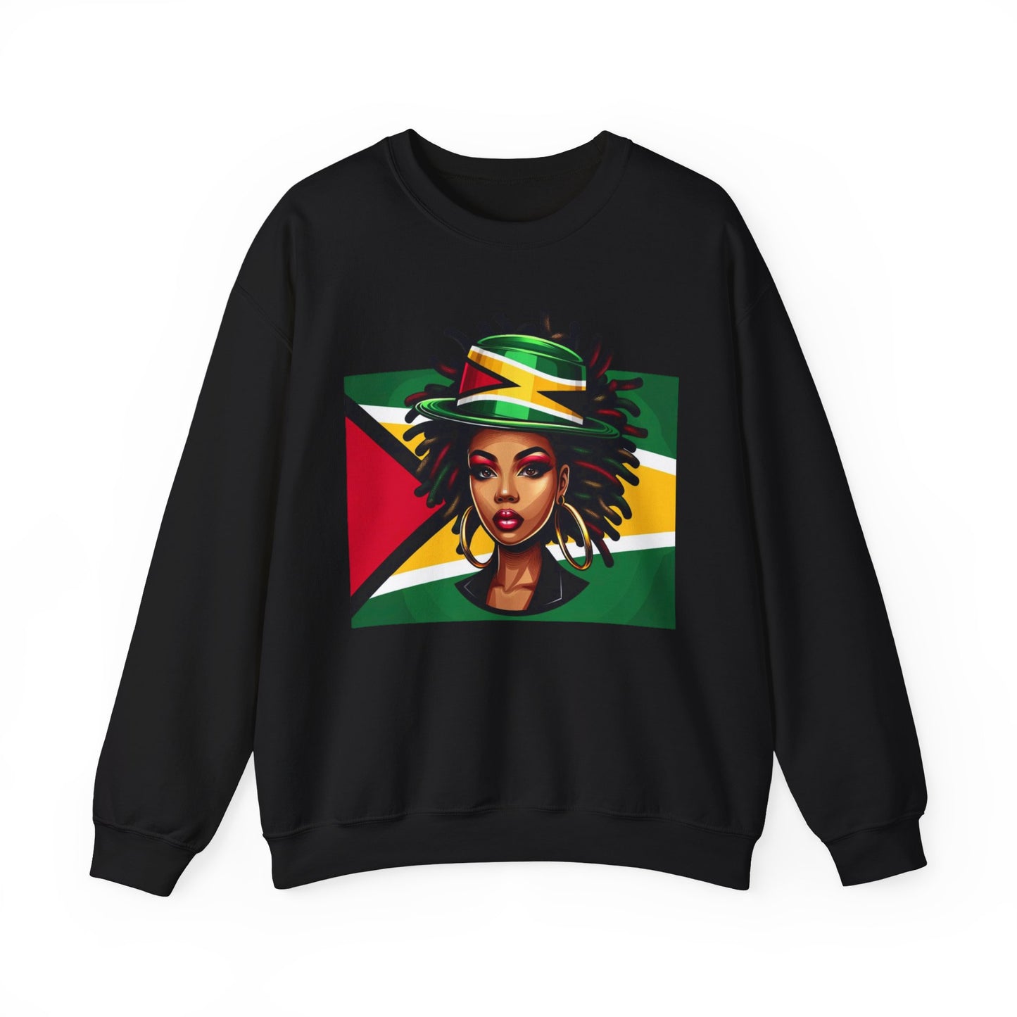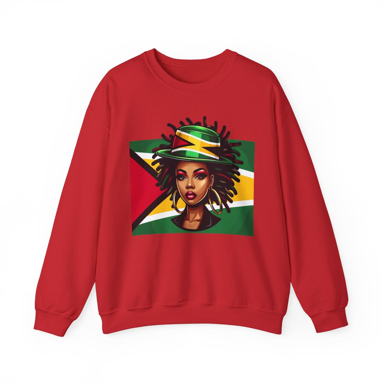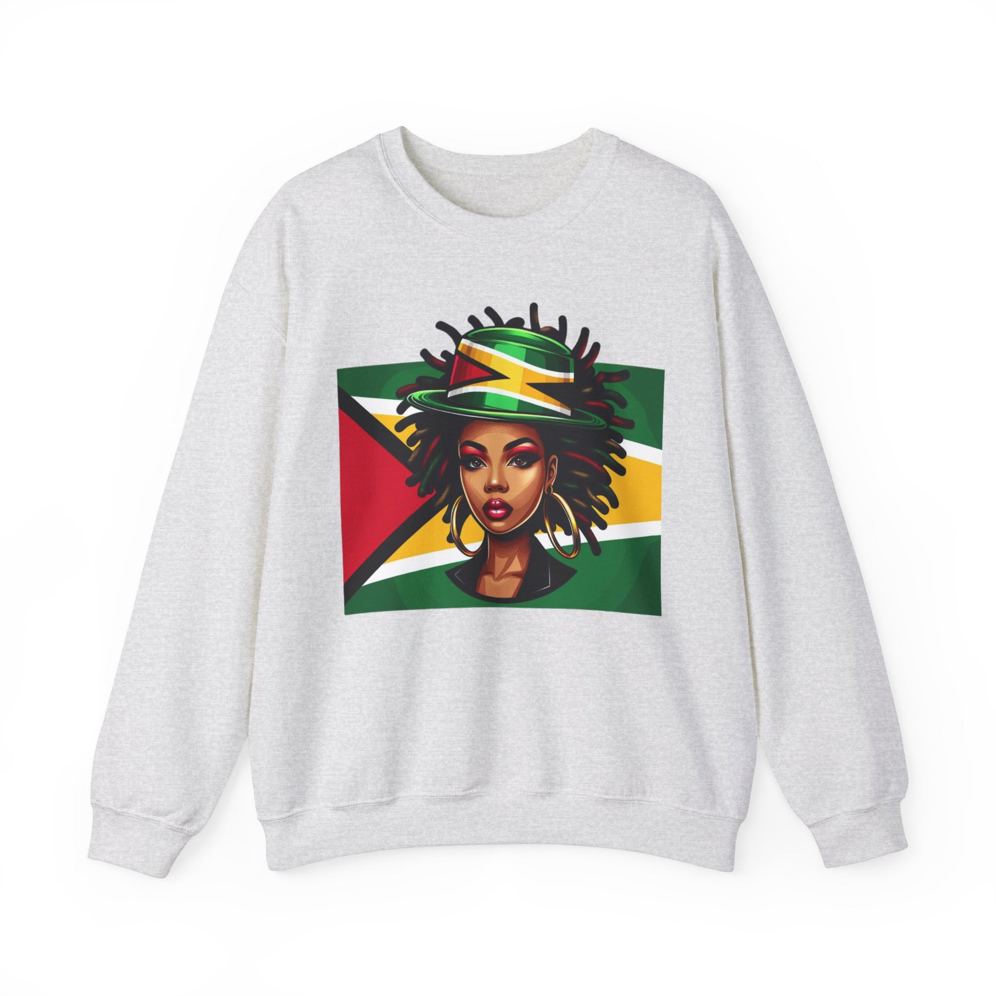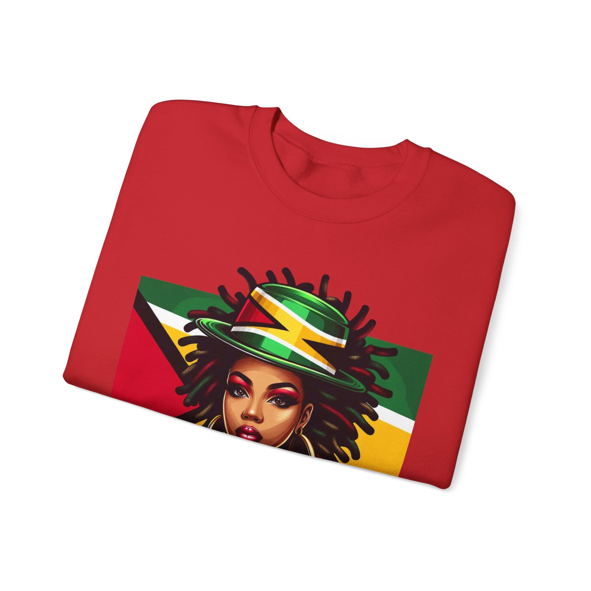 Represent your Guyanese heritage with this bold and vibrant Guyana flag sweatshirt! Made with soft, comfortable fabric, it features the iconic Golden Arrowhead in striking colors. Embrace the spirit of Guyana with its cozy feel and classic fit, perfect for showing your pride at events, gatherings, or simply for everyday wear. Wear your love for the Land of Many Waters with this stylish, comfortable statement piece.