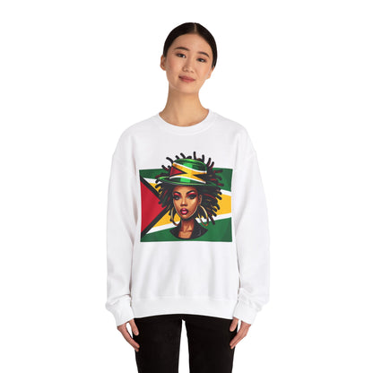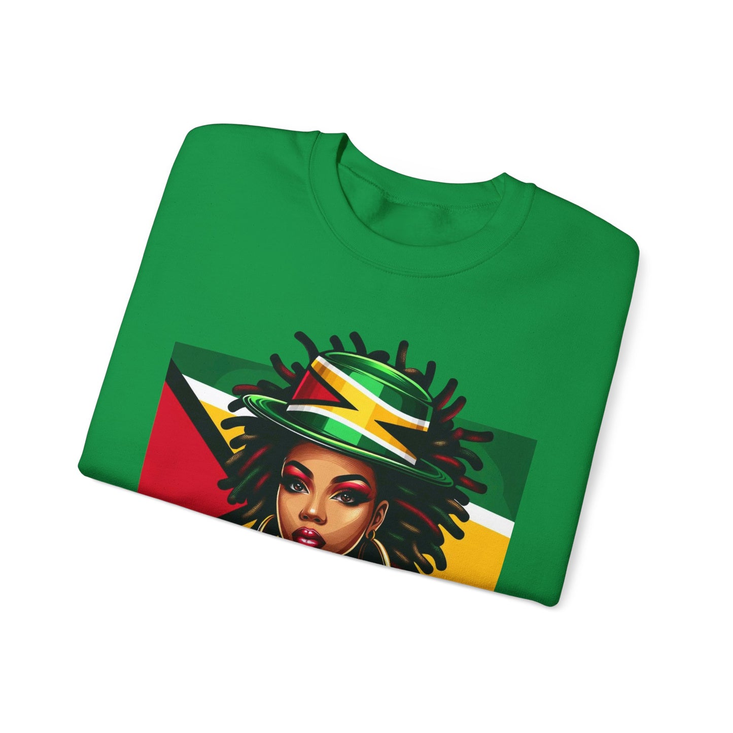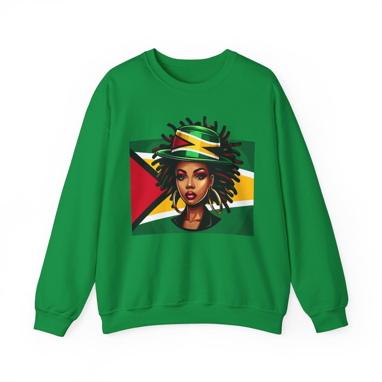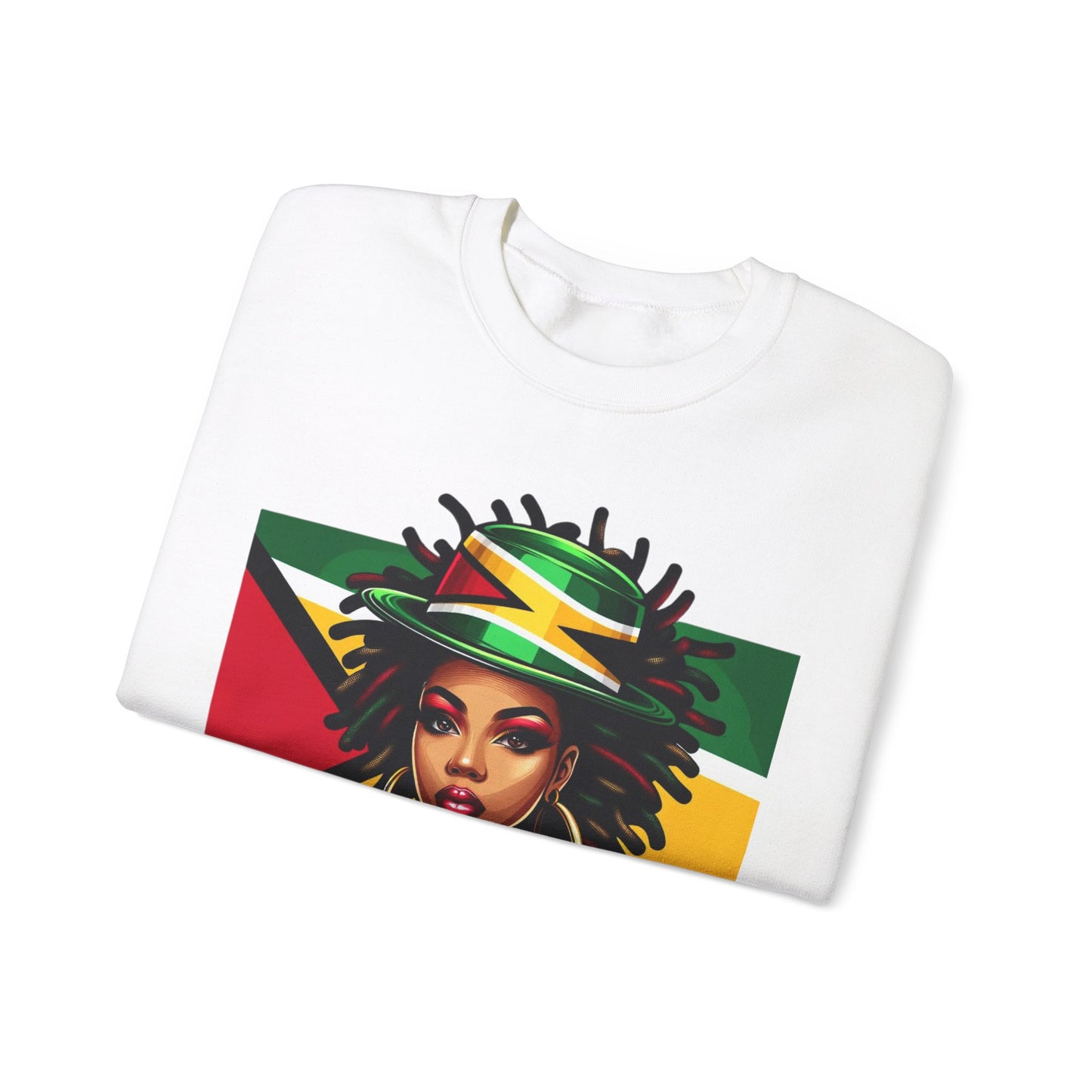 Represent your Guyanese heritage with this bold and vibrant Guyana flag sweatshirt! Made with soft, comfortable fabric, it features the iconic Golden Arrowhead in striking colors. Embrace the spirit of Guyana with its cozy feel and classic fit, perfect for showing your pride at events, gatherings, or simply for everyday wear. Wear your love for the Land of Many Waters with this stylish, comfortable statement piece.