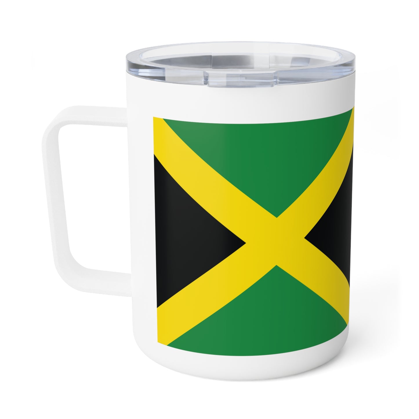 "Wah gwan!" Embrace the Jamaican vibes with our signature Jamaica drinkware – an insulated travel mug every island enthusiast will adore. Whether you're warming your soul with a rich Blue Mountain coffee or chilling with a refreshing sorrel drink, this 10oz stainless steel treasure guarantees your beverages maintain their perfect temperature. Perfect for Jamaicans or any lover of island vibes, this bold cup sparkles with a glossy finish and striking Jamaica flag and coat of arms shouts pure Jamaican pride ! And, with a dependable clear acrylic lid, your reggae jam sessions while cleaning the house will remain spill-free.