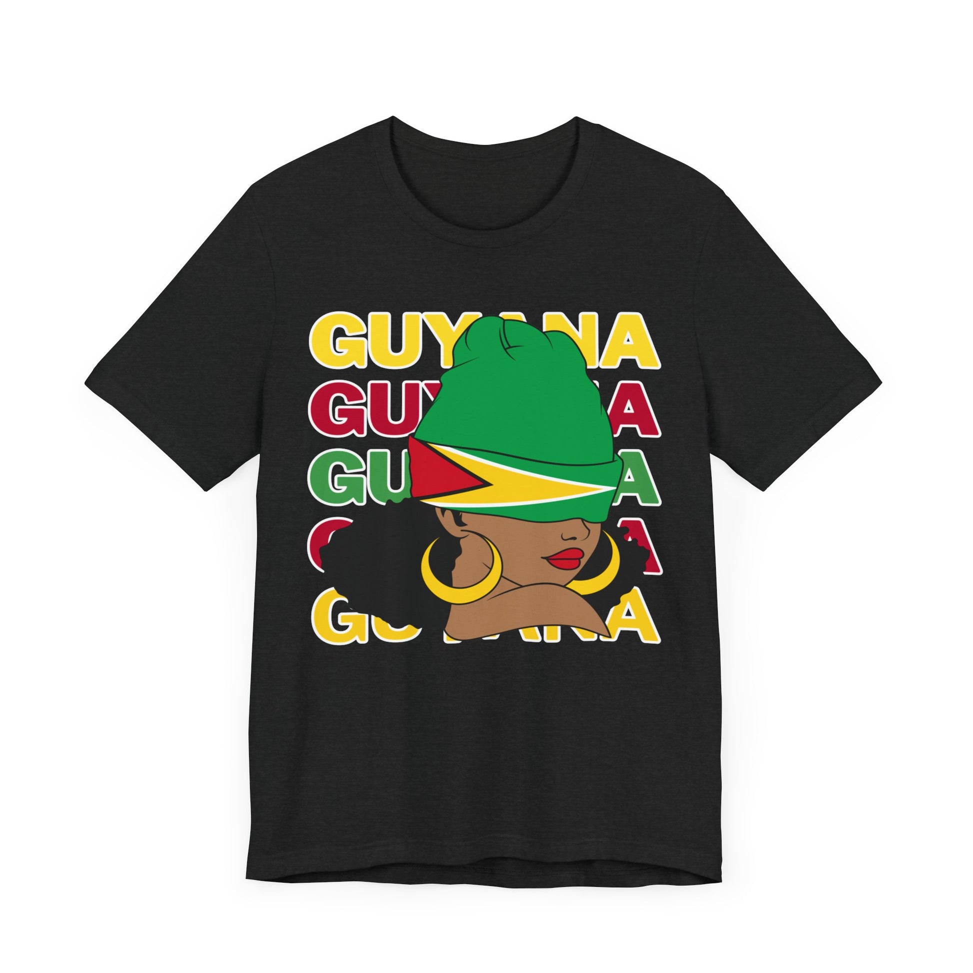 Show your Guyanese pride with this stylish Guyana flag t-shirt for women! This eye-catching tee features the vibrant colors of the Guyanese flag in a classic design. Perfect for everyday wear, this Guyana t-shirt for women is also a thoughtful gift for Guyanese women who love to celebrate their heritage.