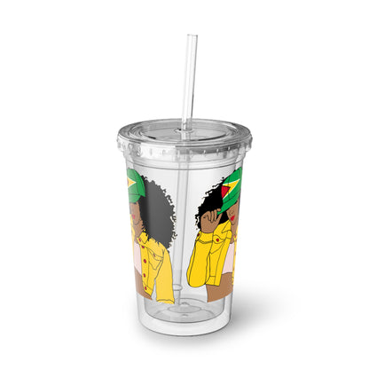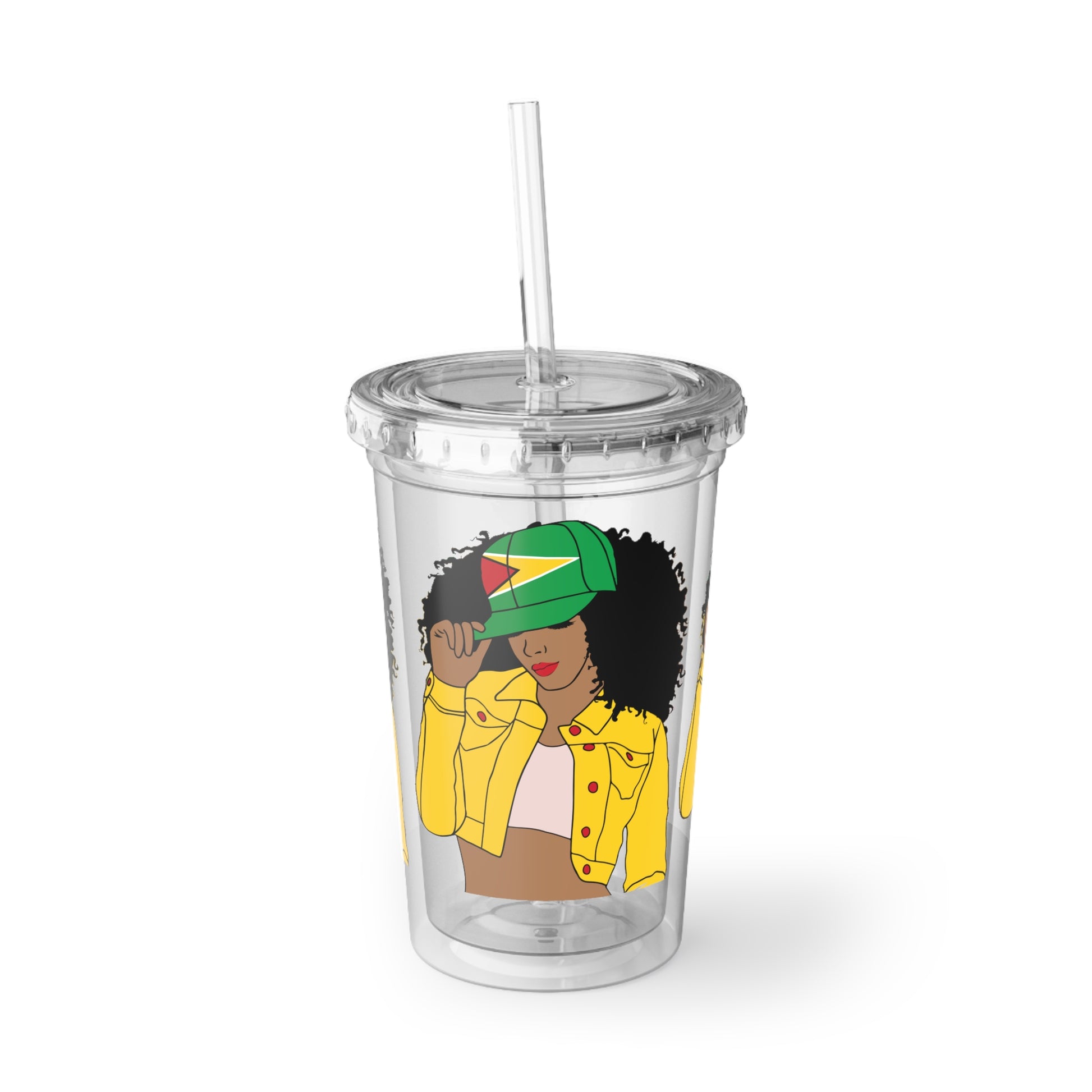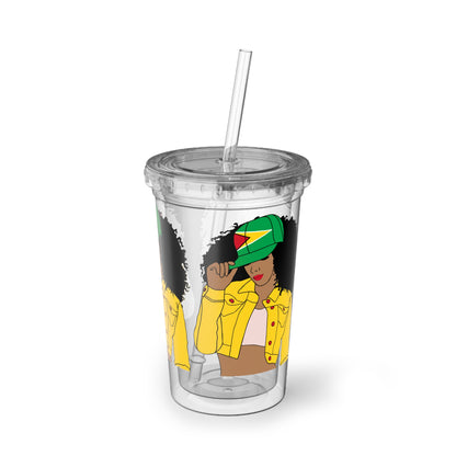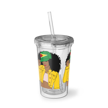 Looking for a gift for that phenomenal Guyanese woman in your life. Look no further! Here's our Guyana Flag cup, paired with a stylish cover and straw. It's the ultimate choice for every proud Guyanese lady out there.