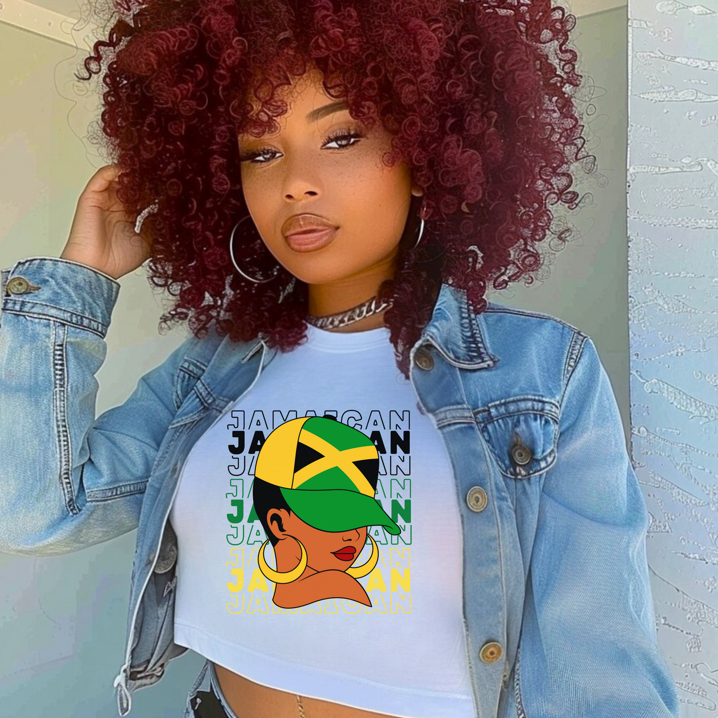 Celebrate Jamaican Pride with Our Jamaica Crop Top & Baby Tee. Infuse your style with the spirit of Jamaica! This personalized women’s tee is perfect for those who carry the heart of the island wherever they go or for visitors looking to take a piece of Jamaica back home. Showcase your personal designs that resonate with the vibrant culture and infectious energy of this beautiful island nation.