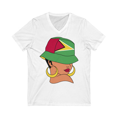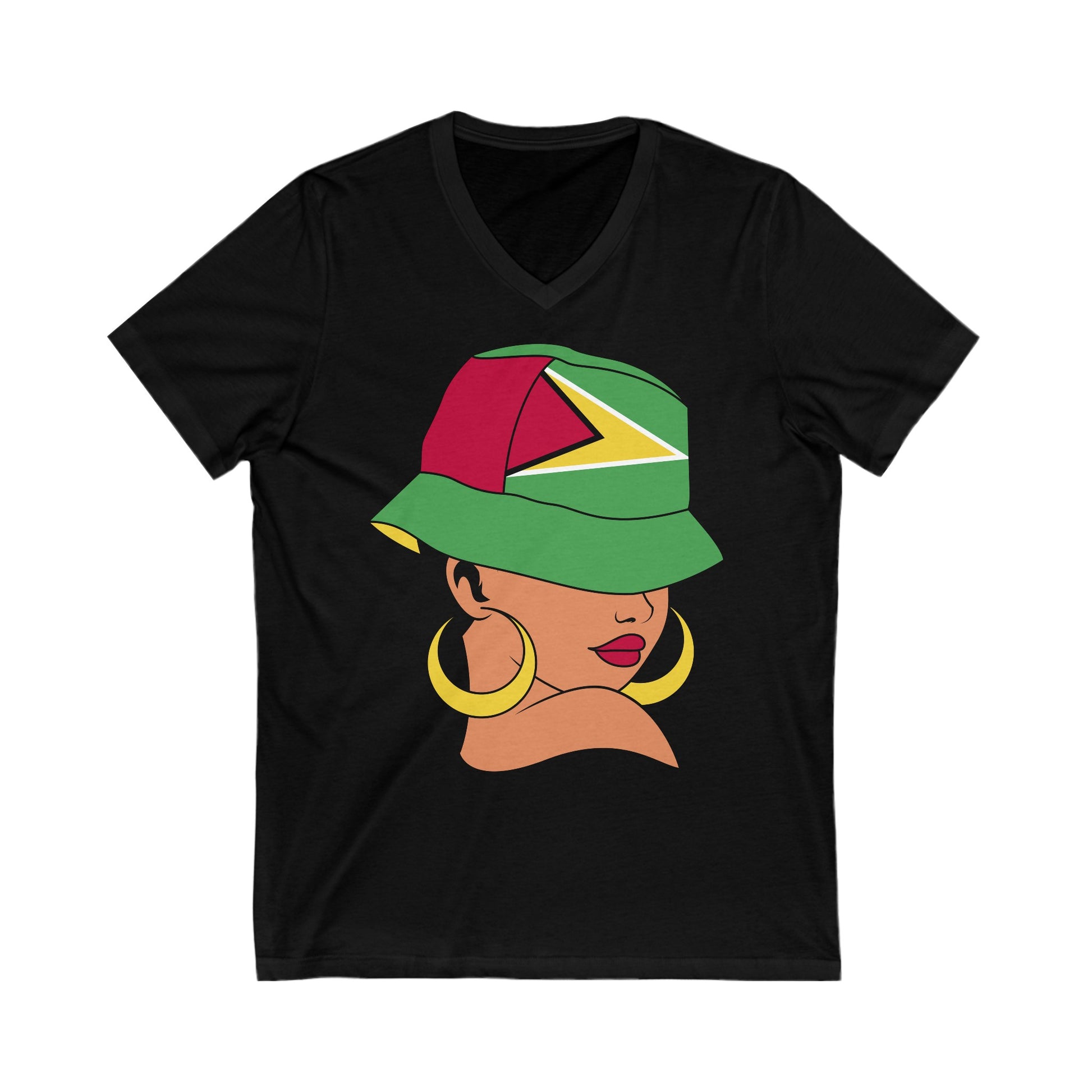 Elevate your wardrobe with the Women's Guyana Flag V-Neck Shirt, a stylish tribute to your heritage. Crafted with superior quality fabric, this shirt features the vibrant colors of the Guyana flag, embodying a sense of pride and elegance. Its flattering v-neck cut ensures a chic, comfortable fit perfect for any occasion, making it a must-have for those who wish to wear their cultural pride fashionably.