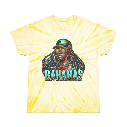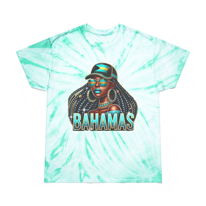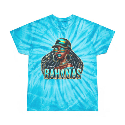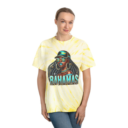 Patriotic Bahamian Woman with Bahamas Flag Design Tie-Dye T Shirt