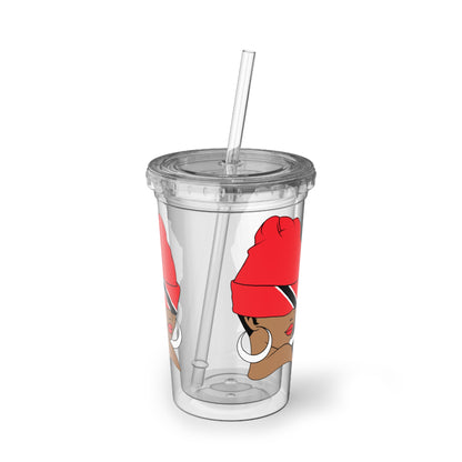 Comes with a plastic lid and straw