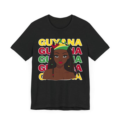 Show your Guyanese pride with this stylish Guyana flag t-shirt for women! This eye-catching tee features the vibrant colors of the Guyanese flag in a classic design. Perfect for everyday wear, this Guyana t-shirt for women is also a thoughtful gift for Guyanese women who love to celebrate their heritage.
