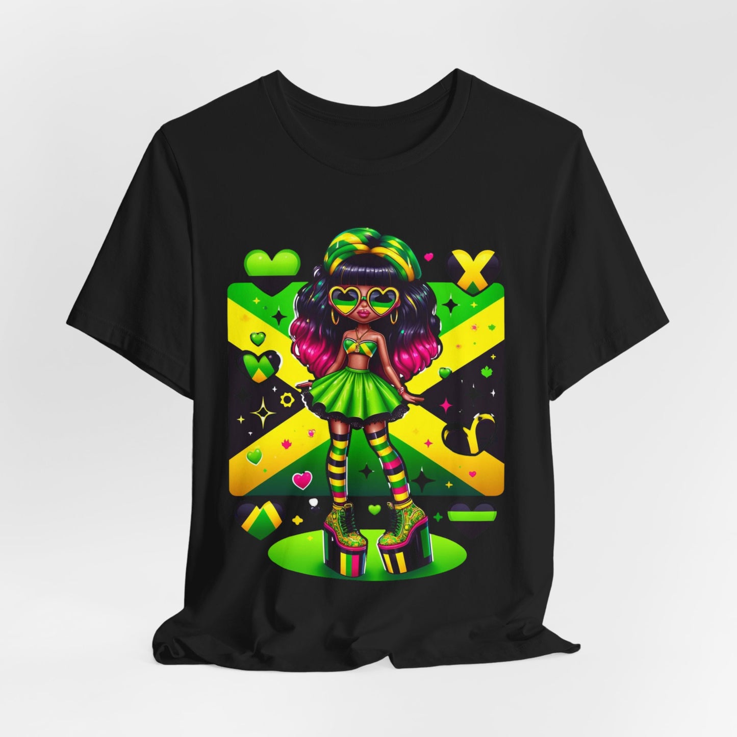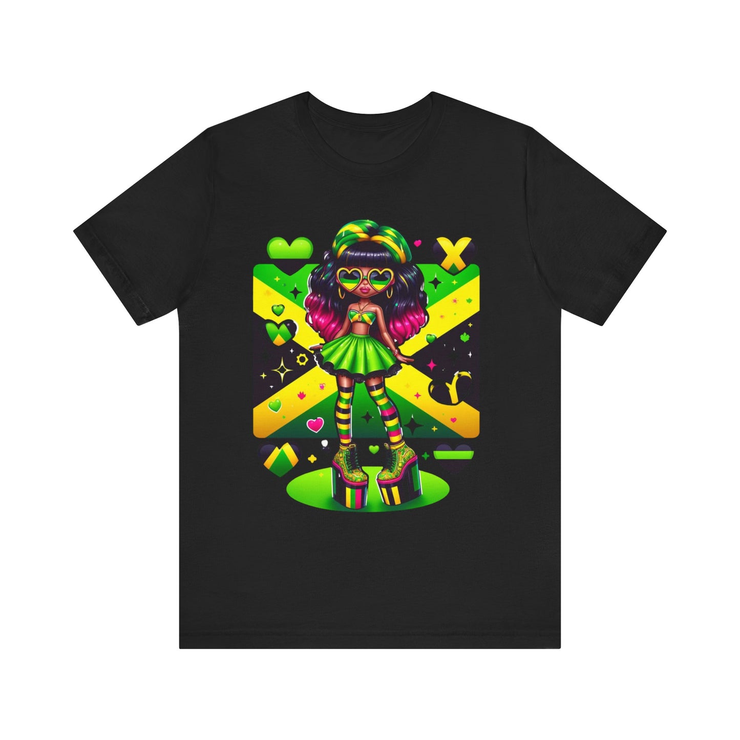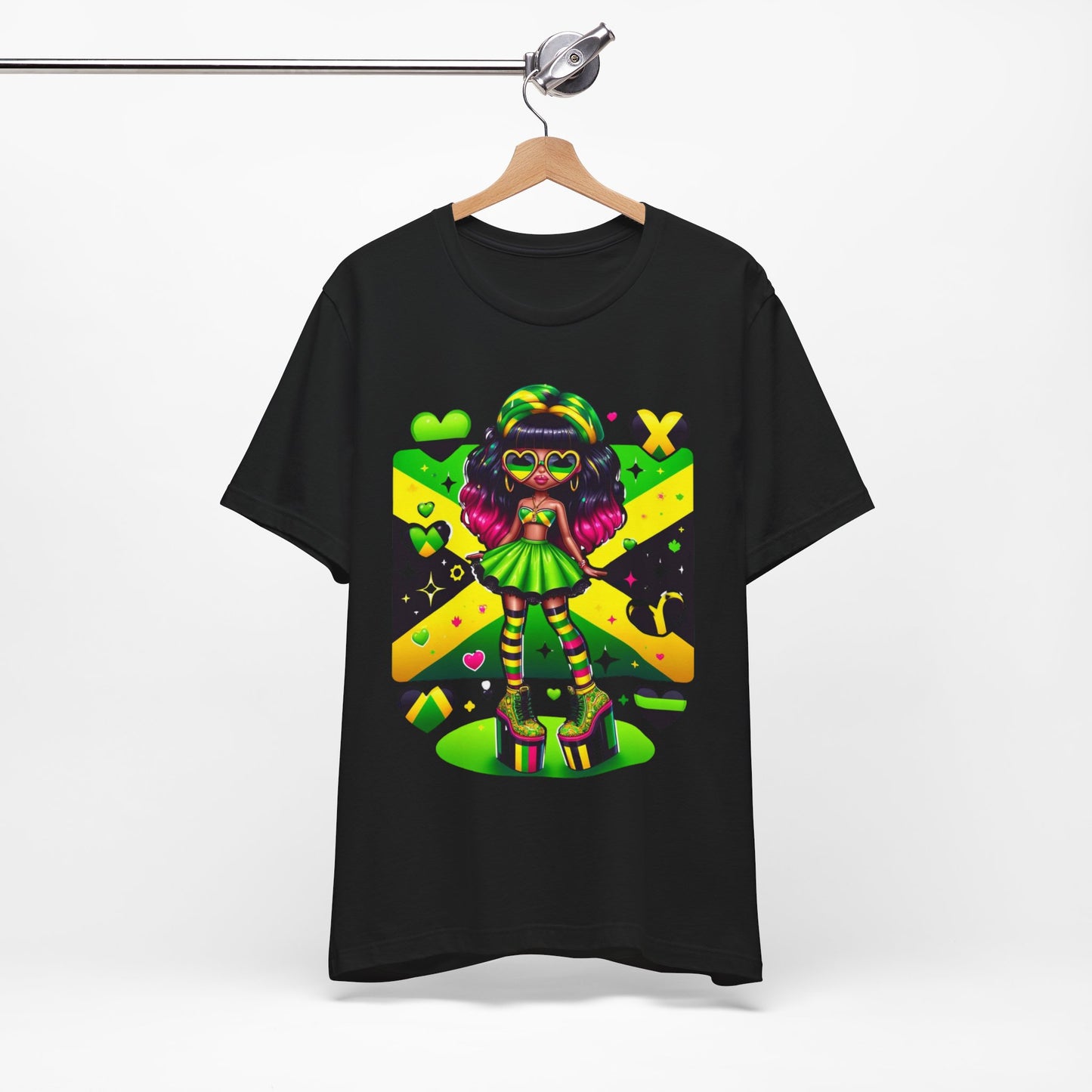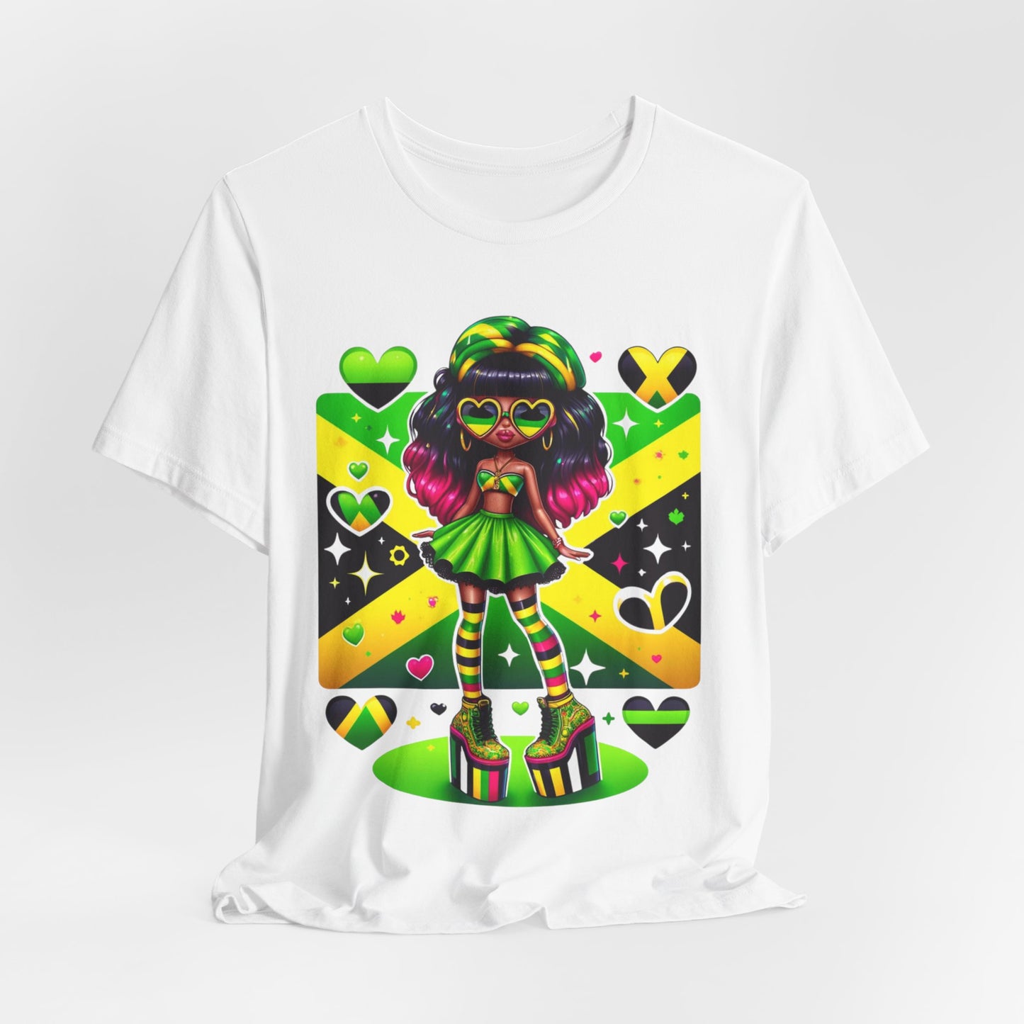 Don't miss out on this one-of-a-kind and vibrant Jamaican flag tee. Order yours today and wear it with pride, knowing you're representing a nation known for its strength, resilience, and unwavering spirit.