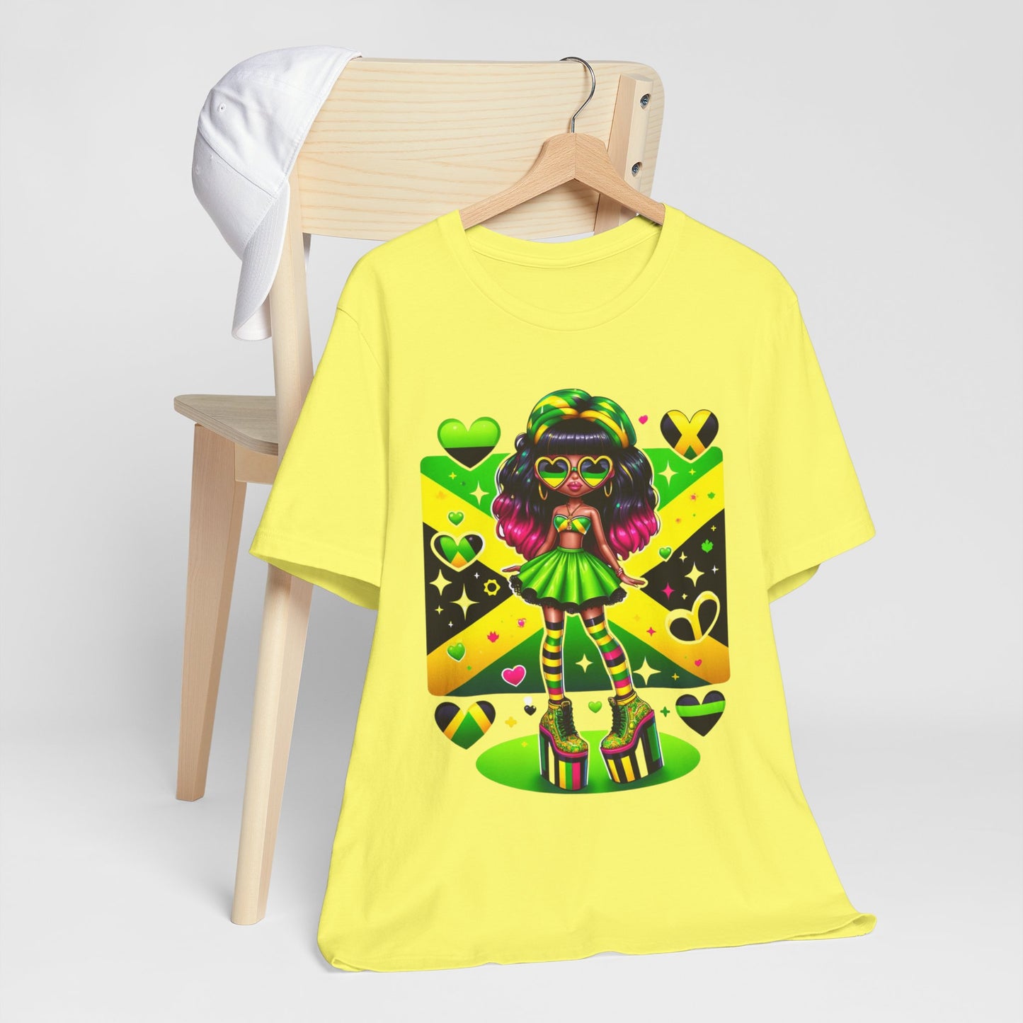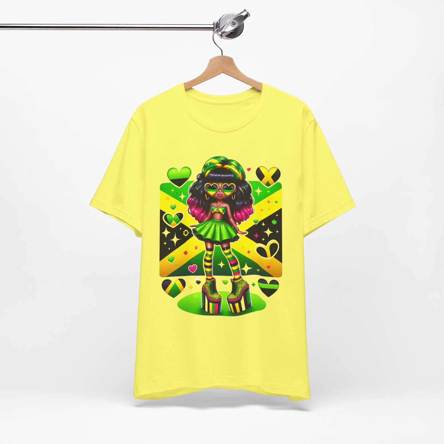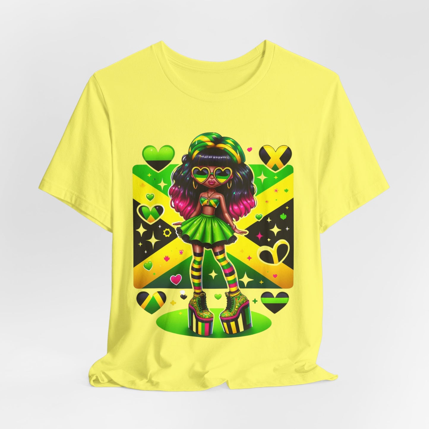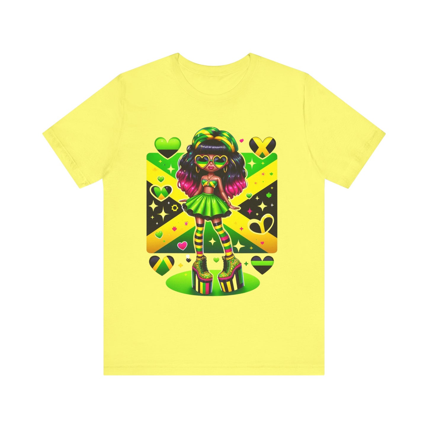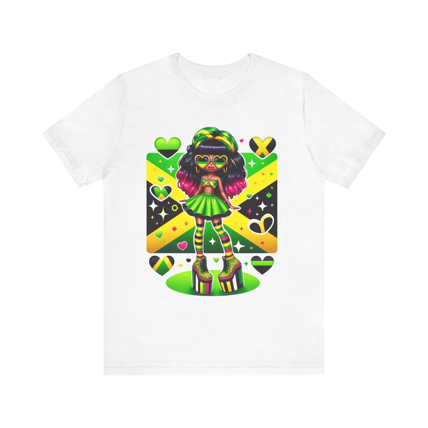 Don't miss out on this one-of-a-kind and vibrant Jamaican flag tee. Order yours today and wear it with pride, knowing you're representing a nation known for its strength, resilience, and unwavering spirit.